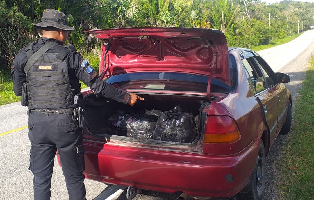 La Policía Nacional Civil a través de La Subdirección General de Análisis de Información Antinarcótica logra la aprehensión de una persona de sexo masculino que se conducía a bordo de un vehículo tipo automóvil, al efectuarle un registro en el interior del baúl se encuentran 02 paquetes envueltos con nylon de color negro, conteniendo en su interior hierba seca marihuana.