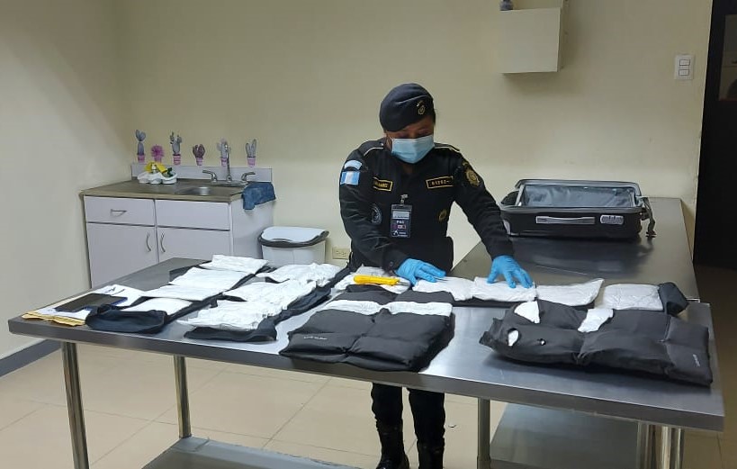 Las bolsas con posible droga de la denominada cocaína venían ocultas en doble fondos de partes del equipaje. El total del ilícito decomisado asciende a un total de 13 kilogramos aproximados, juntamente con dos teléfonos celulares.