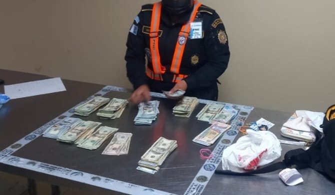 Sorprendieron a una persona sexo femenino de nacionalidad guatemalteca que pretendía salir del país trasladando 35,090.00 Dólares Americanos, al momento solicitarle la procedencia del efectivo no justifico el mismo.