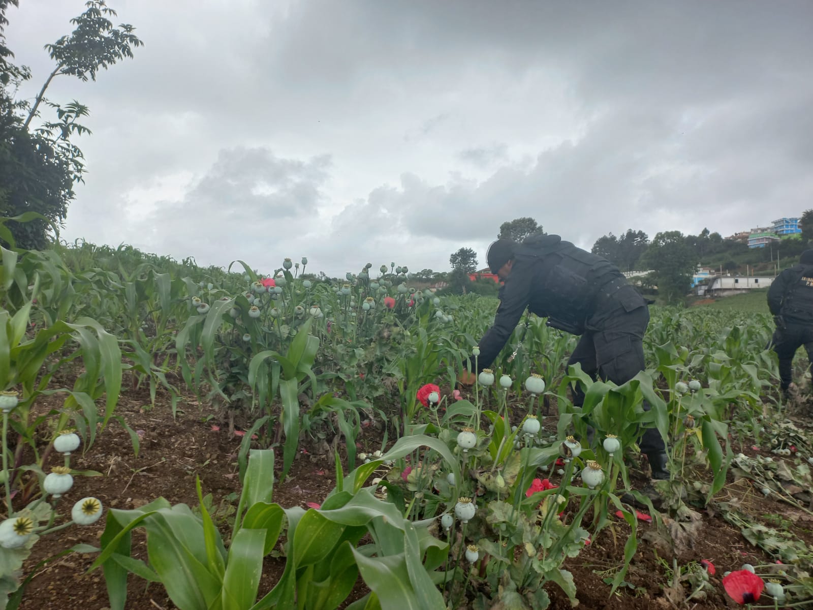 La Policía Nacional Civil a través de la Subdirección General de Análisis de Información Antinarcótica, en cumplimiento a sus funciones de combate al narcotráfico, erradicó dos (02) campos cultivados con amapola en Aldea Tuiladrillo, municipio de Ixchiguan, departamento de San Marcos.