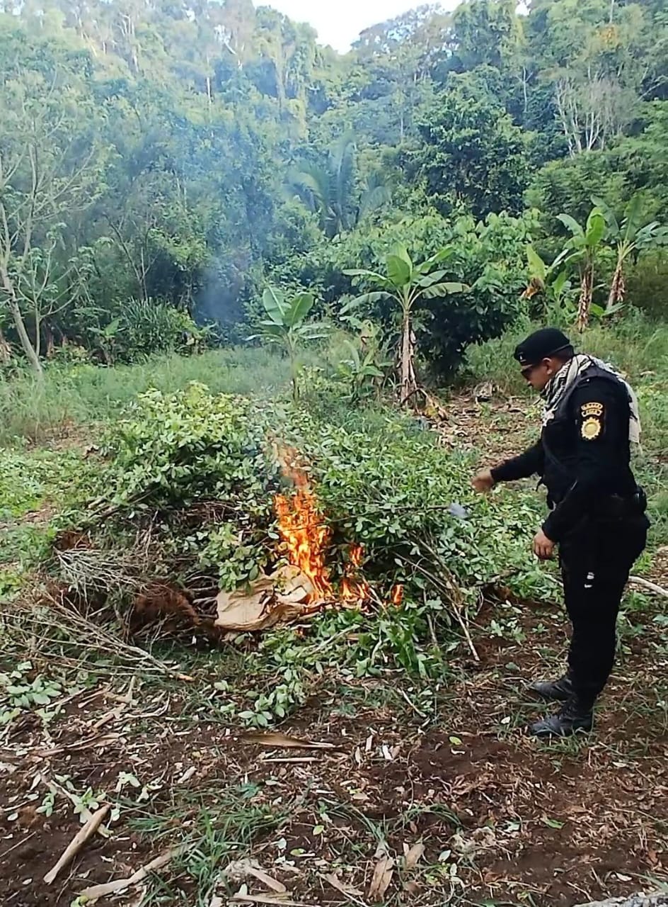 Personal de la Subdirección General de Análisis de Información Antinarcótica de la Policía Nacional Civil; realizaron Búsqueda, localización, erradicación y destrucción de plantas Ilícitas, en el Departamento de Peten, específicamente en el Caserío Santa Rosita, Municipio del Chal, Peten..