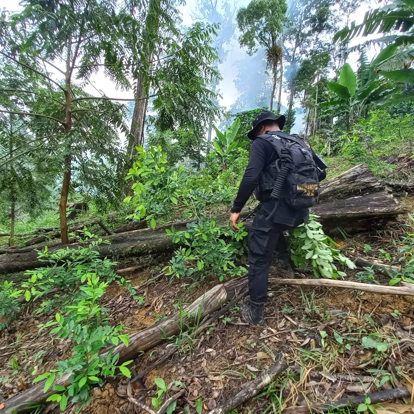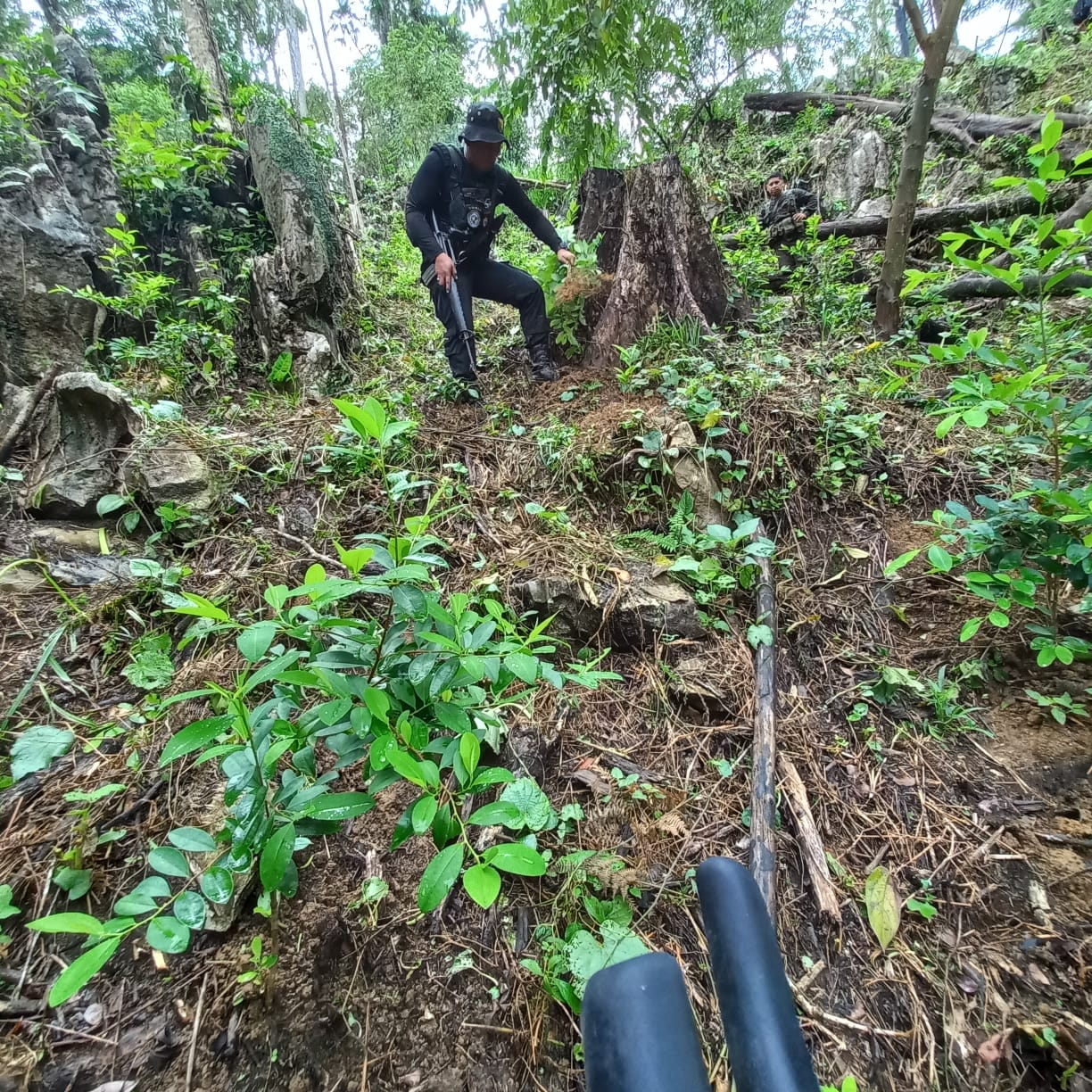 Personal especializado de la Subdirección General de Análisis de Información Antinarcótica de la Policía Nacional Civil SGAIA/PNC, erradicaron plantaciones de arbustos de coca.
