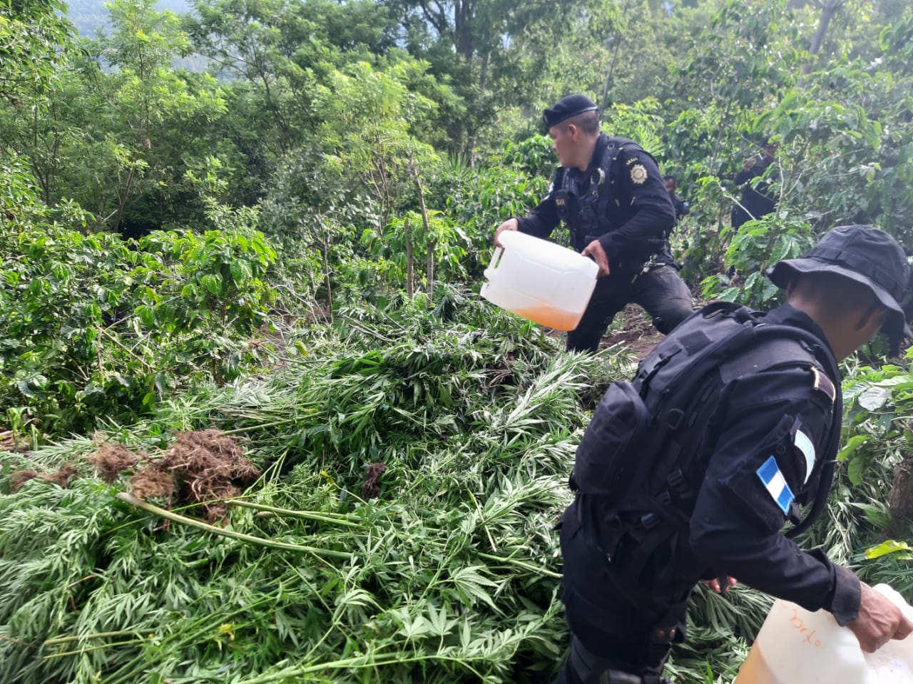 La diligencia se realizó en la aldea La Lima del municipio de Camotan, Chiquimula. Las matas estaban ocultas entre una plantación de café.