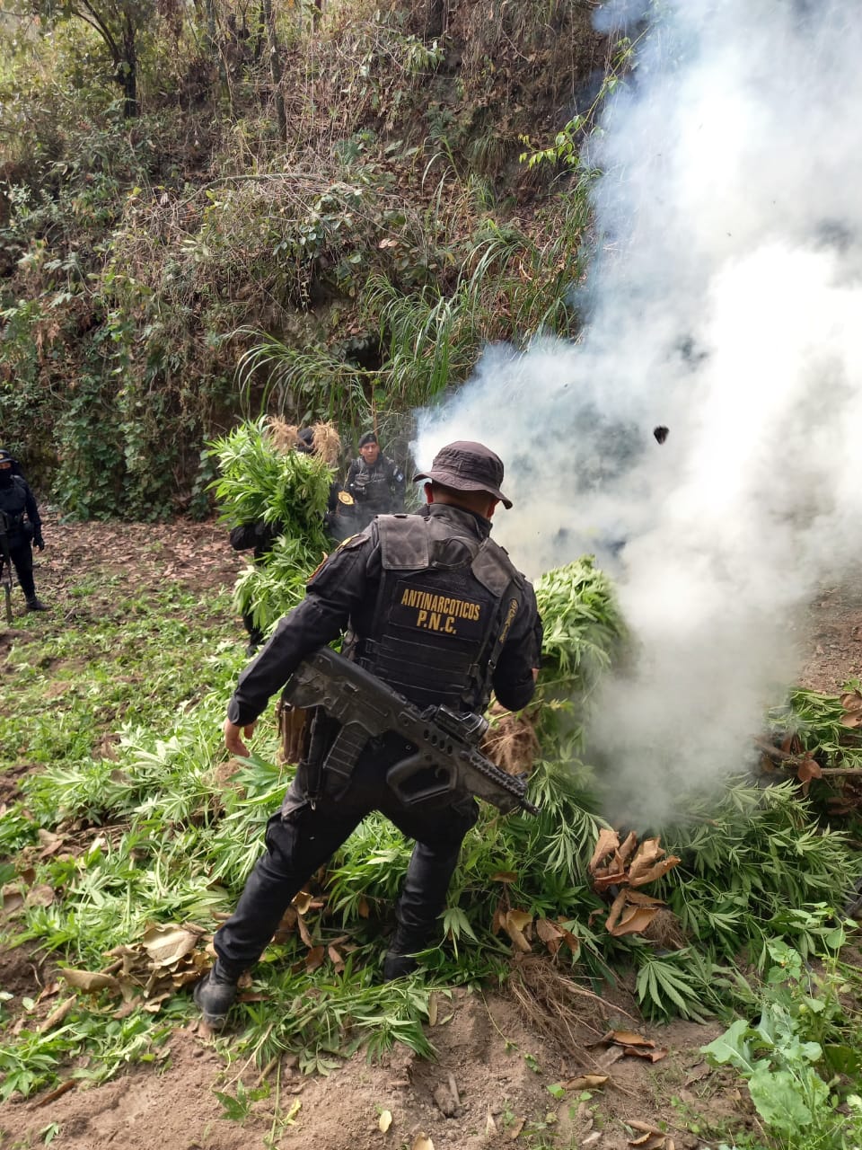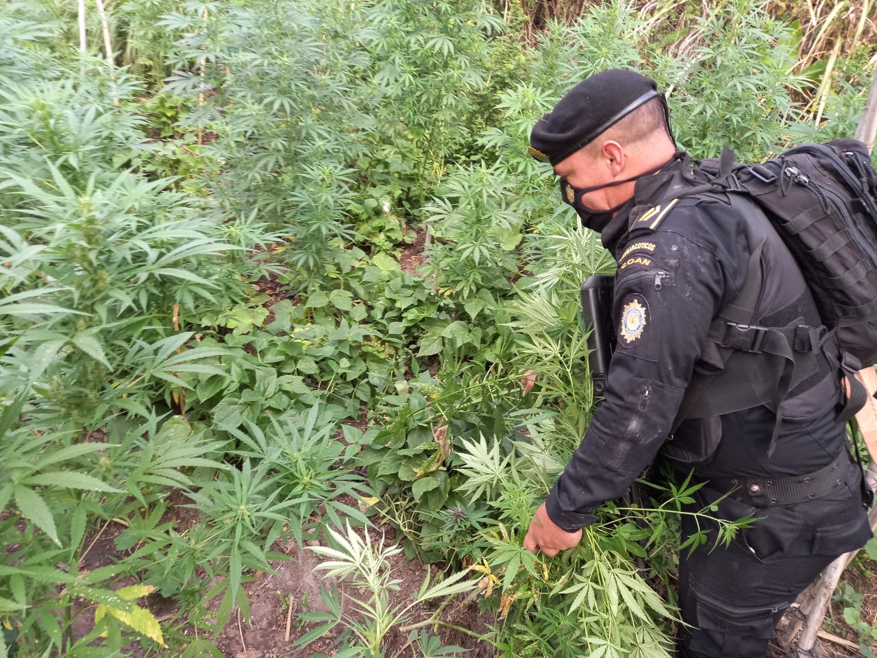 Personal especializado de la Subdirección General de Análisis de Información Antinarcótica de la Policía Nacional Civil SGAIA/PNC, erradicaron plantaciones de marihuana en fase de crecimiento y aprovechamiento.