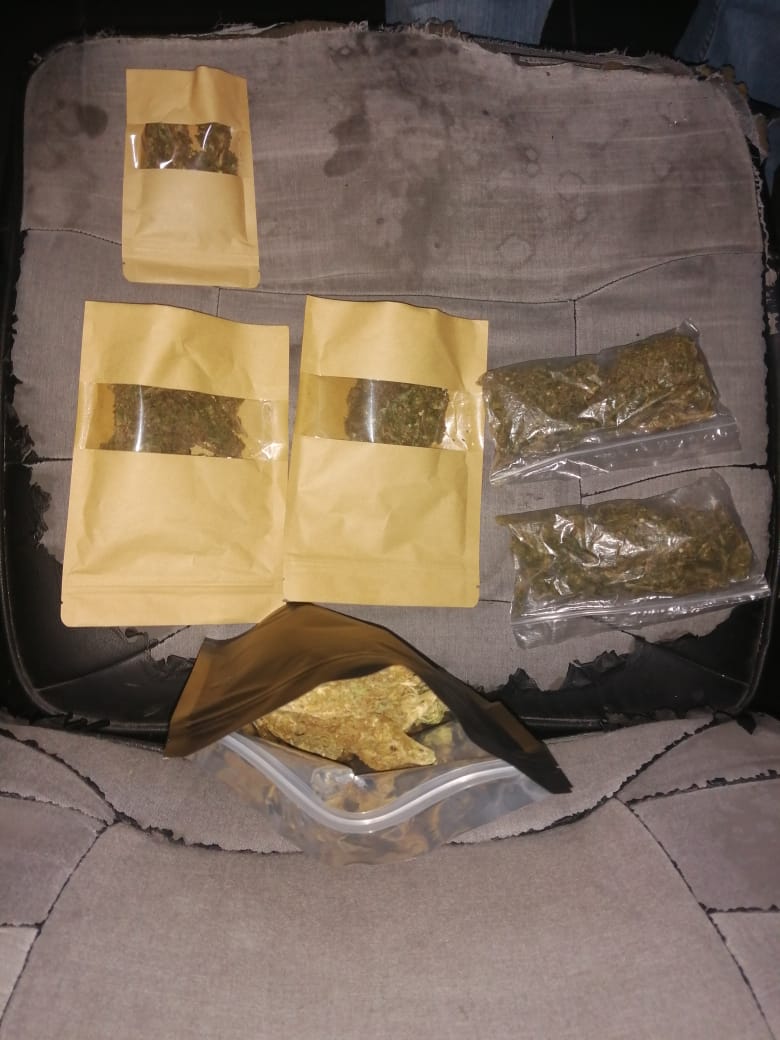 01 bolsas de nylon color negro, conteniendo en su interior, 03 sobres de papel manila y 02 bolsas de nylon transparentes, de hierba seca de la posible droga marihuana.