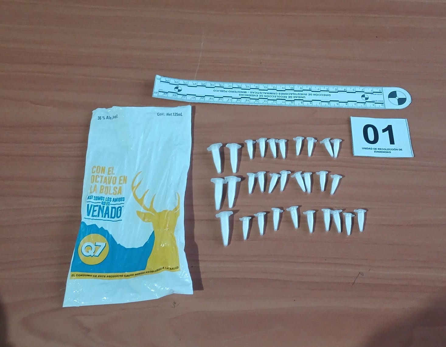 La Policía Nacional Civil a través de La Subdirección General de Análisis de Información Antinarcótica, como parte de seguimiento a una denuncia recibida en la Línea Antinarcótica 1577, se logró la aprehensión de una persona de sexo femenino, sobre la 9na calle y 5ta avenida Barrio Las Champas, Municipio de Puerto Barrios, departamento de Izabal, a la cual se le incauto lo siguiente: